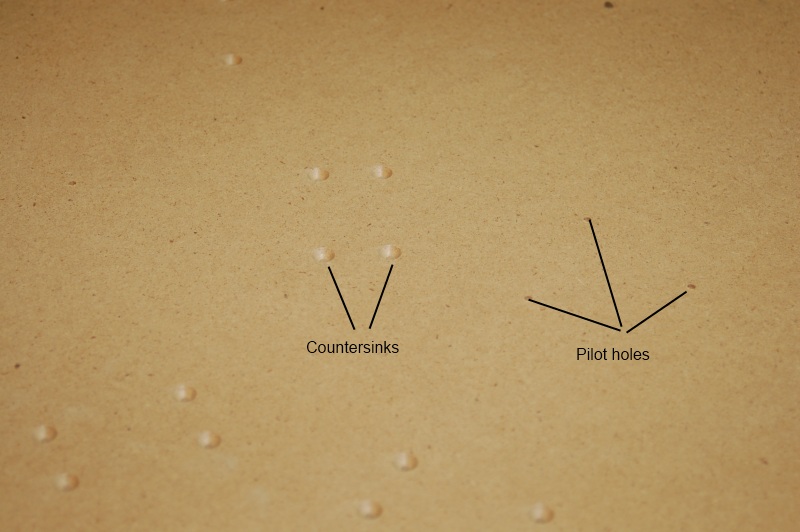 In order to strengthen the material joints in the screen support parts, we needed to cut a set of doublers.  Part of this was seeing if we could get the 'bot to do the countersinks for us.  I had a 3/8" 82 degree countersink that I could fit to the 1/4" collet on the 'bot.  Wayne created a file in VCarve that would have countersinks at various depths - turns out .210" is perfect for a #8 flat head screw: