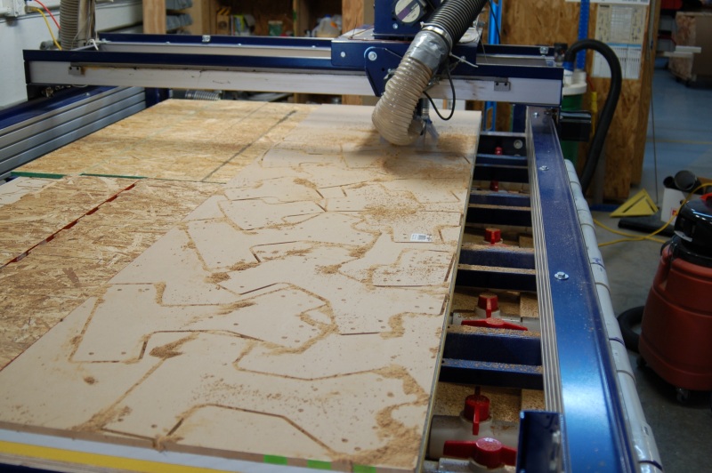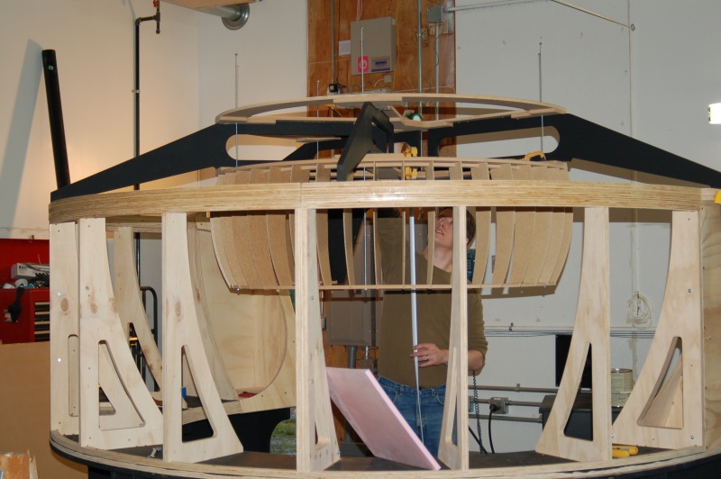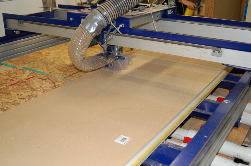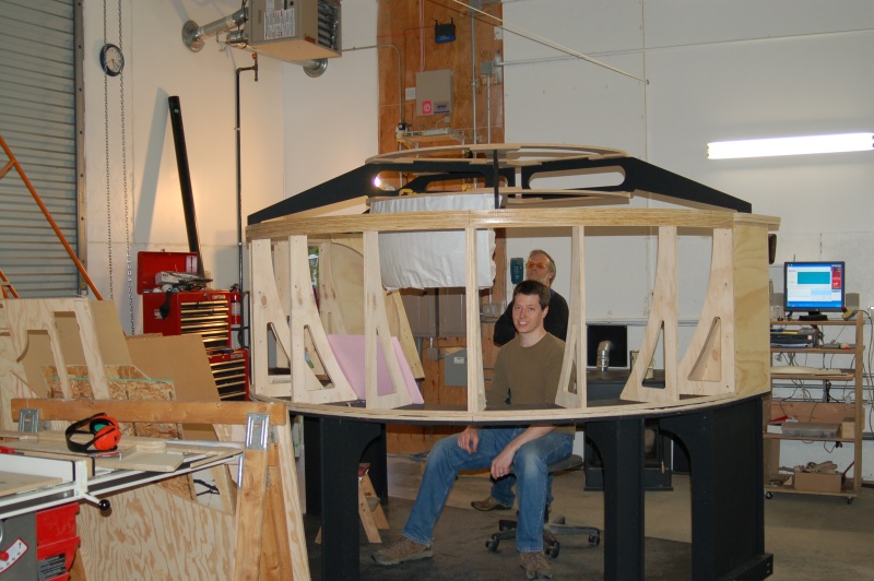 Regarding the construction, there are several details of our build that fall into the "because we can" category.  There aren't really any critical design features there that couldn't be built with careful use of 'normal' wood-shop tools.  The shopbot is wonderful in that it lets us build parts almost as fast as we can conceive them and draw them up, and it lets us incorporate features such as indexing tabs that help to speed up assembly without having to jig everything up.