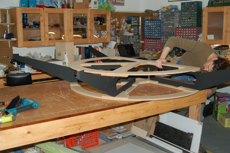 The "spider" arms for the screen & projector support platform were cut out last weekend.