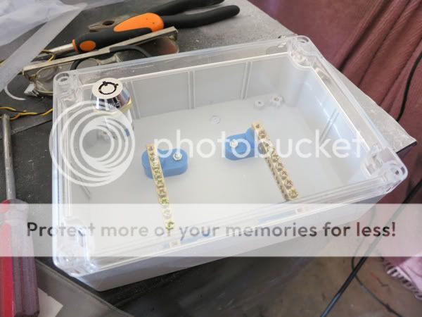 The box with the mounted 12 volt and 5 volt terminal blocks