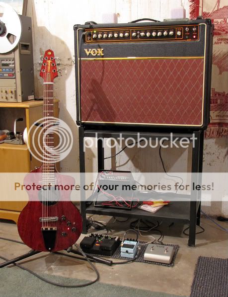 Wow some nice equipment there!! Just saw this post figured i would show a pic of my little setup. I mostly just mess around with some local friends and record a little on the computer. Been playing for about 17-18 years or so. Used to be pretty serious about playing but now its just for fun. Nice to see some guitar playing sim builders here :)