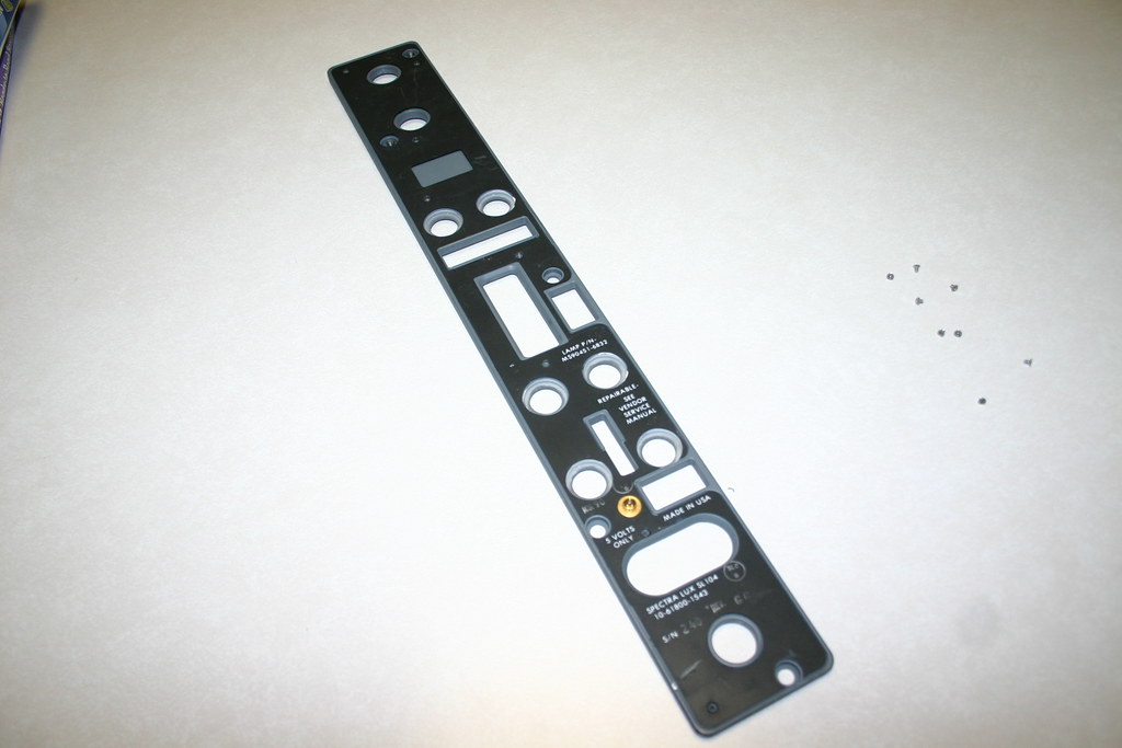This is the center panel for the overhead and is in excellent condition.  I decided to take apart the backlighting panel behind it and take some pictures so everyone can see how the real panel is setup and the 5v lightbulbs in the back.   This is the same thing I will do for my own panels as I make them on the cnc.  I already have a nice supply of scissor cut thin clad board and about 1000 of these little 5v bulbs.