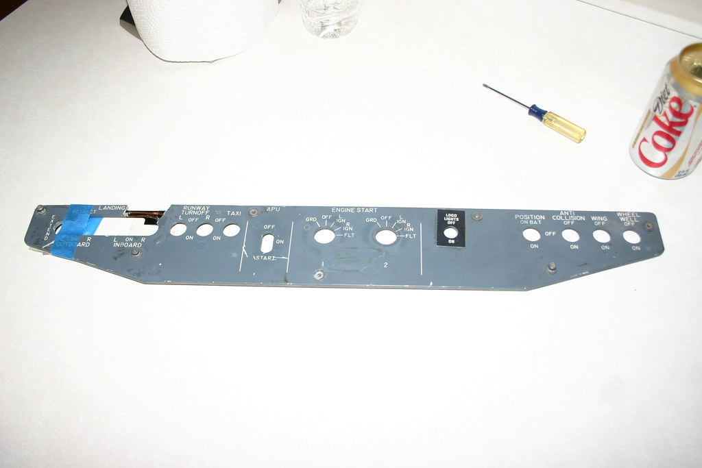 Here is my new lights panel.  It is damaged but will be easily repaired.  The backlighting works fine.  I also have most of the actual toggles to populate it.    I just love the look of years of use....  Nothing like the real thing!
