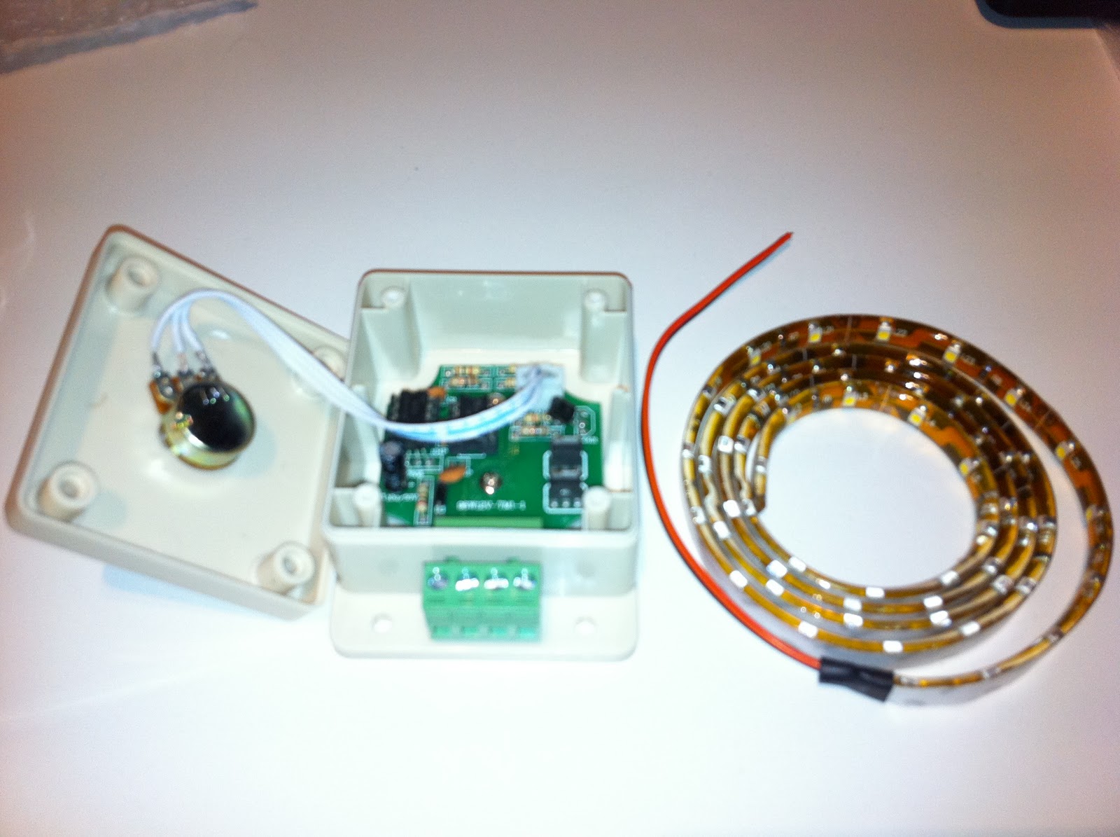 Talk about timing? After reading Jacks post we ordered the same dimmer and led light strip, and installed this past week. Removed the AFDS panel knob and inserted the dimmer knob, and then added a longer 3 wire strand (RC Servo wire of red, yellow & black) to go to the dimmer box placed behind the MIP. For power, we just ran 2 sets of red & black wire twisted with a drill to the PSU, the led light strip and then to the dimmer box.