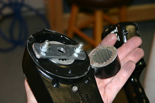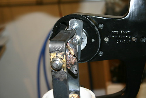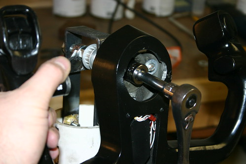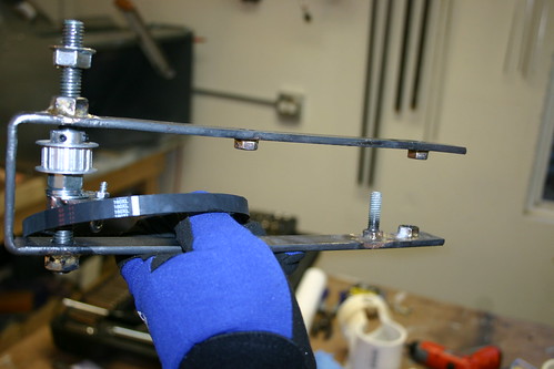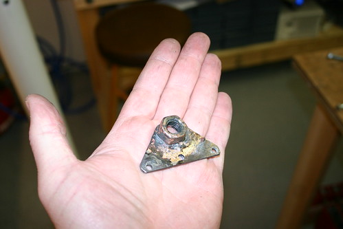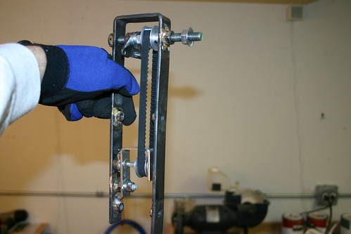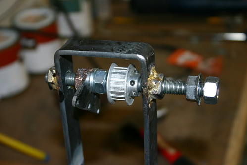 Welded a stud on for attaching the lower pulley and potentiometer bracket...