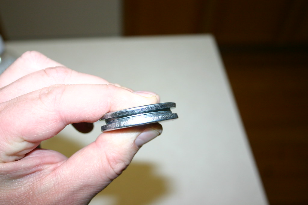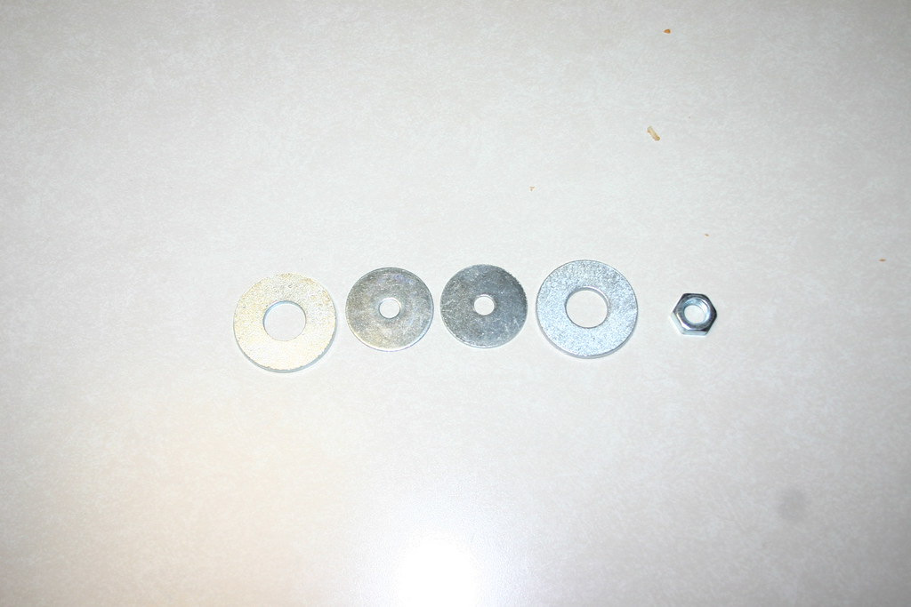 I decided based on some recommendations from a member at the Hangar45 forum that instead of using a horn method of connecting cables between the two yokes that I should be using pulleys instead.    I needed pulleys to hold very small 1/8" plastic coated cable I plan on using and it had to be just under 2" in diameter.   I also needed them to be relative slender because I can only fit so much on the top of the column in the space I have.    Well after hunting around I couldnt find anything that fit the bill.   Then while at the hardware store in the nuts and bolts aisle a solution sprung into my brain.    I got what I needed and ran home to my acetelene welder and viola....what you see below is what I came up with.   I think this will work perfect.    Thought I would post in case anyone else has run into this need before.   All you need is some washers and a little brazing....