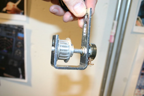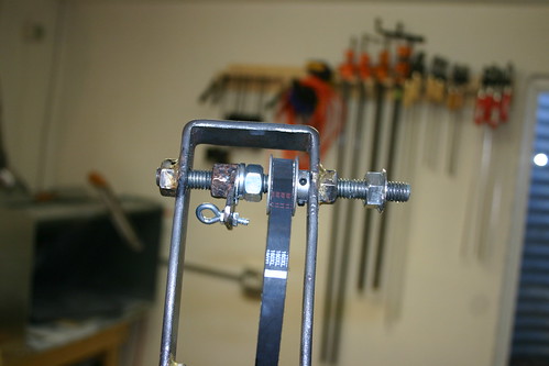 Great idea Trevor!  I like the idea of being able to adjust and this would work perfectly.I will still have to notch it in because there will be very little room between the top of the pulley and my bracket but the set screw will be wonderfull to have.   Nice....