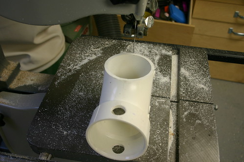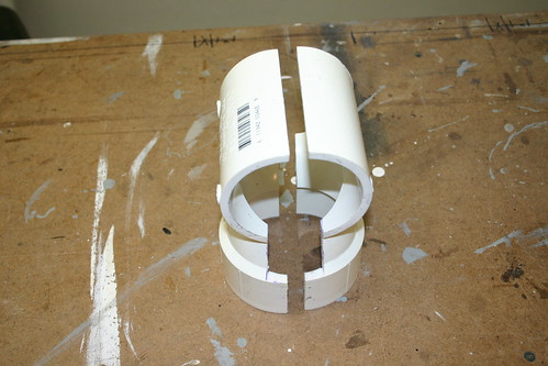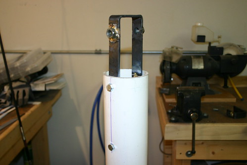 attached and lower part done by end of this weekend and pictures will follow.  I also figured out that I do not need to fully split the pvc top section in half.  I can leave the very top uncut and spread the bottom far enough to drop on over the mechanics then hold with only two screws.   Works like a champ.