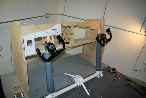 The PVC is plenty strong with the exception of the crossbar which could be stiffer.   It may be better to have the crossbar made of steel pipe and I may change it out later.    The only problem with the PVC cross pipe is that it can twist (tortional weakness).   It is not too bad but just enough that with the weight of the yokes on top of the columns they can create enough momemtum if you move them in jerky fashion that when one side is moving real fast then stopped (pitch) the other has a tendency to want to keep going from intertia.  This is noticible mainly in the form of unwanted feedback through the crossbar.  That said, real pilots don't jerk their yokes around like that in pitch.    If you fly normally then there is no problem at all and it is plenty strong.