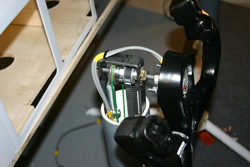 Here are some more project pictures.     Everything is working now although I am still playing a little with springs and door closer adjustments.  I may change out the lower springs to elastic bungees instead.  The pulleys work perfect and yokes turn together in perfect harmony!  Thank you to Trevor for the method of locking the cables from slipping on the pulleys and also providing a way to adjust (while I couldnt find the locking wire nuts you mentioned Trevor, you gave me the idea to use wheel collars instead which work similiar, thanks).     Wiring of switchs and pots to come next but thanks again to Trevor and Michael I shoudl have that solved soon.    Note that the crossover tube and door closer mechanisms will be closed in with covers and by the TQ base.  Once complete I plan on making a short video to post with all in motion.