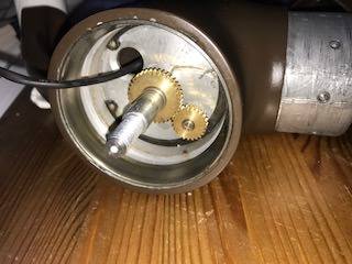 It looks to me that the plate holding the potentiometer in place is being held with a circlip. Remove that and the plate will likely come out to show that the gear is being held on the pot with a grub screw.