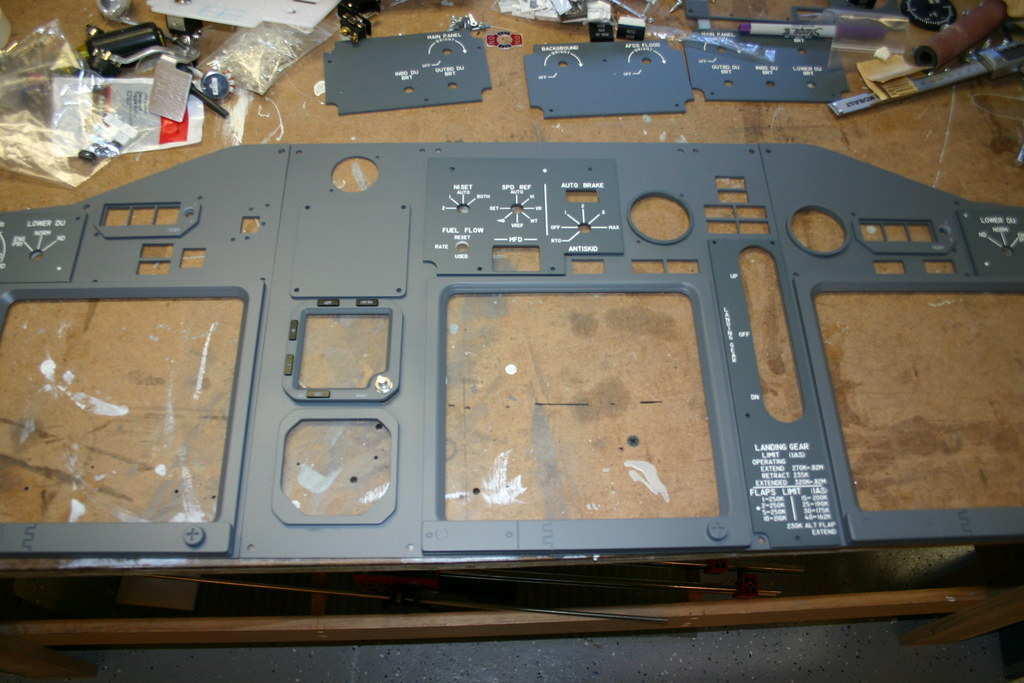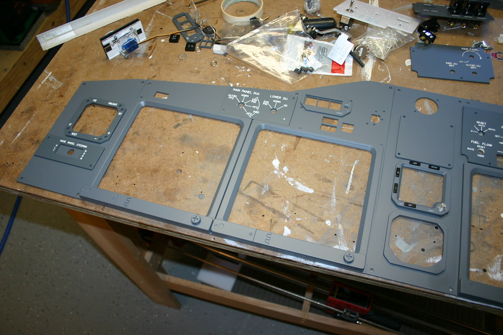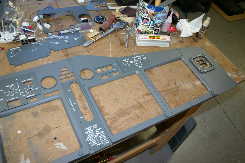 Here are some new pictures of my MIP progress.     The light panels are Open Cockpits and again, I chosed these rather than making them on the cnc because I like the laser engraving and the nice bright white color of the letters when not backlit.   I must say that the OC panels are a good value and speed up the project.    The MIP backers, ISIS panel, all bezels including the DUs, rings, etc were made on my cnc.   Everything is starting to take shape nicely and especially love now that I got them painted today.