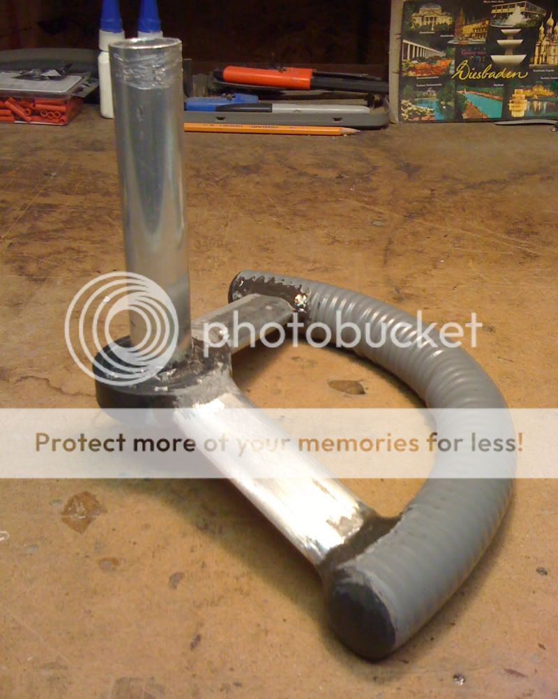 I used 7/8" aluminum tubing, 1" steel core flexible electrical conduit, a steel 2-1/2" cap, and a plastic cap from a car wash bottle for the center.
