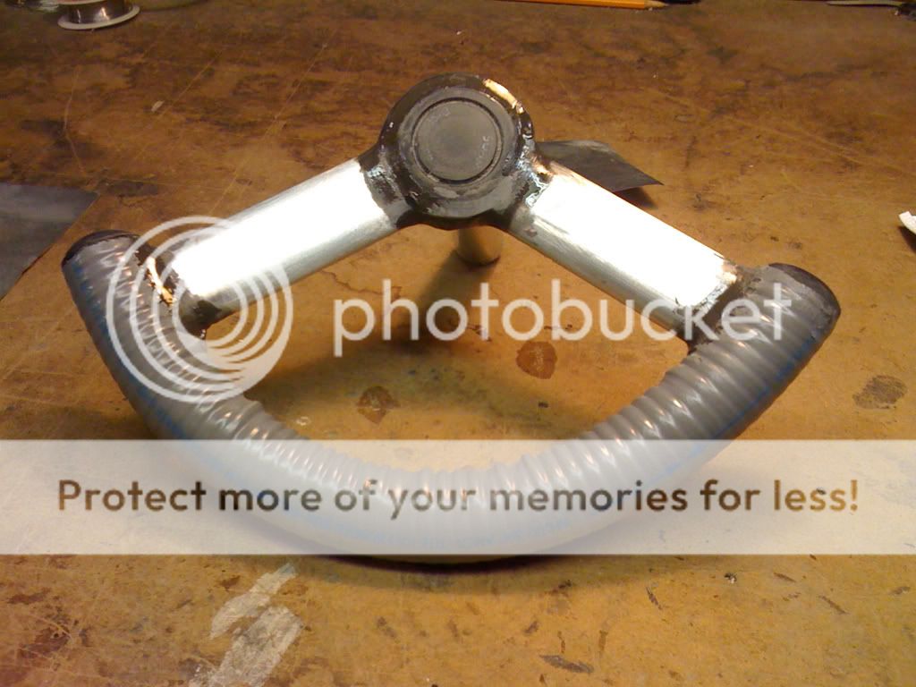 The struts are fitted into cut opening in the conduit and the center cap is simply JB Welded to the struts.