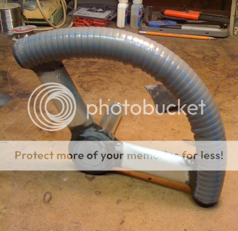 I used two pieces of the 7/8" tubing for the wheel struts and collapsed them in a vise so they were the same thickness as the sidewall of the steel center hub.
