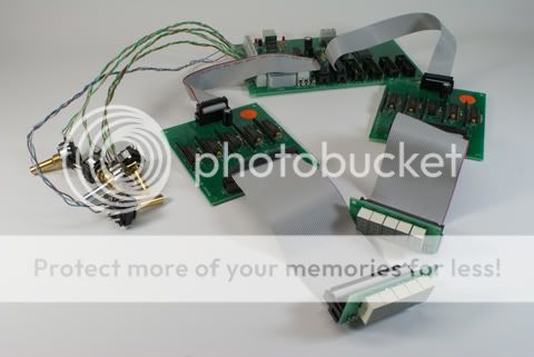 The above photo shows a typical configuration. Ribbon cables are supplied at a standard length of 250mm each. 5 Rotary Encoders supplied, but if you wish to use dual-concentric types, you will need to purchase them separately.