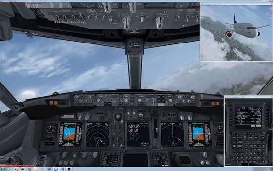 From this set up it therefore follows that all in-cockpit or instrument panel views used to control the aircraft must be displayed on the main server. All other views (scenic or external) can be offloaded onto the client systems. You can create wide panoramic vistas this way, or additional external aircraft views, without draining the resources on your main system or degrading its performance.