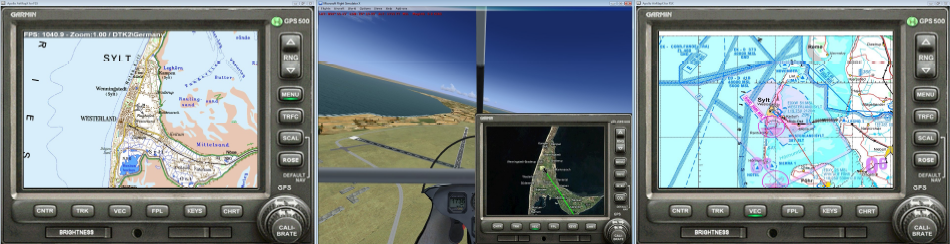 Multi-monitor, simultaneous display of topographic, aerial and VFR-ICAO maps over Sylt Island, Germany AirMap-X is a stand-alone application for Windows XP and VISTA. It requires only a single license for FSX and FS2004 and will be shown for the first time at the Flight Simulator exhibition at Paderborn Airport, Germany, September 26th. It is available now for online-ordering for a time limited special introductory price of 29.95 Euro.