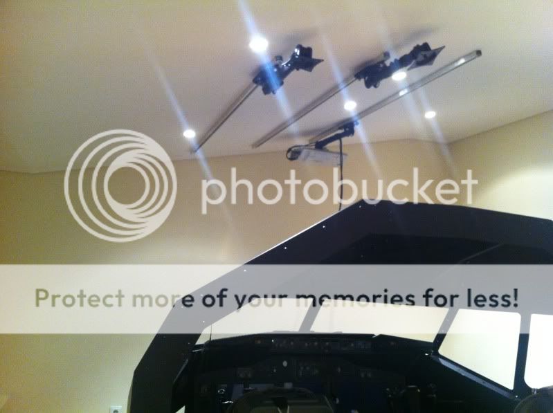 Nice...real nice...now a mental note for Nick's overworked brain. Put a fan somewhere up there to blow the heat down and away. All the heat of your sim, your booty and your projectors will have no where too go otherwise. That means shortened life span for your bulbs and projectors...
