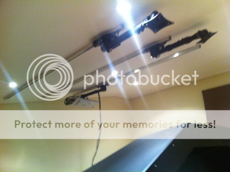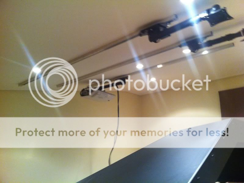 Nice set-up to easily adjust the projectors.  I'm hoping that the tracks are attached to a ceiling that isn't a floor above that someone can walk on.