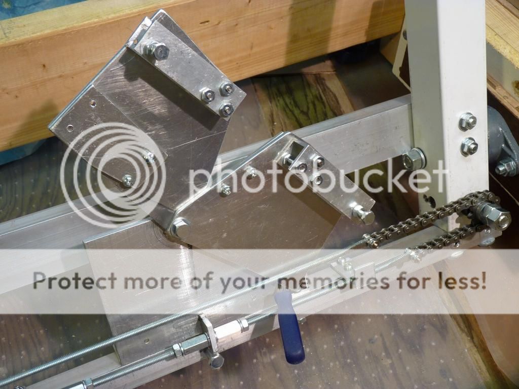 There are six 10-tooth chain  sprockets used with two  #35 chains. Two sprockets for the chain inside each column and two sprockets with the chain connecting the columns. Each chain  has two turnbuckles installed for adjustments (thanks for the tip about installing two, Edward! )