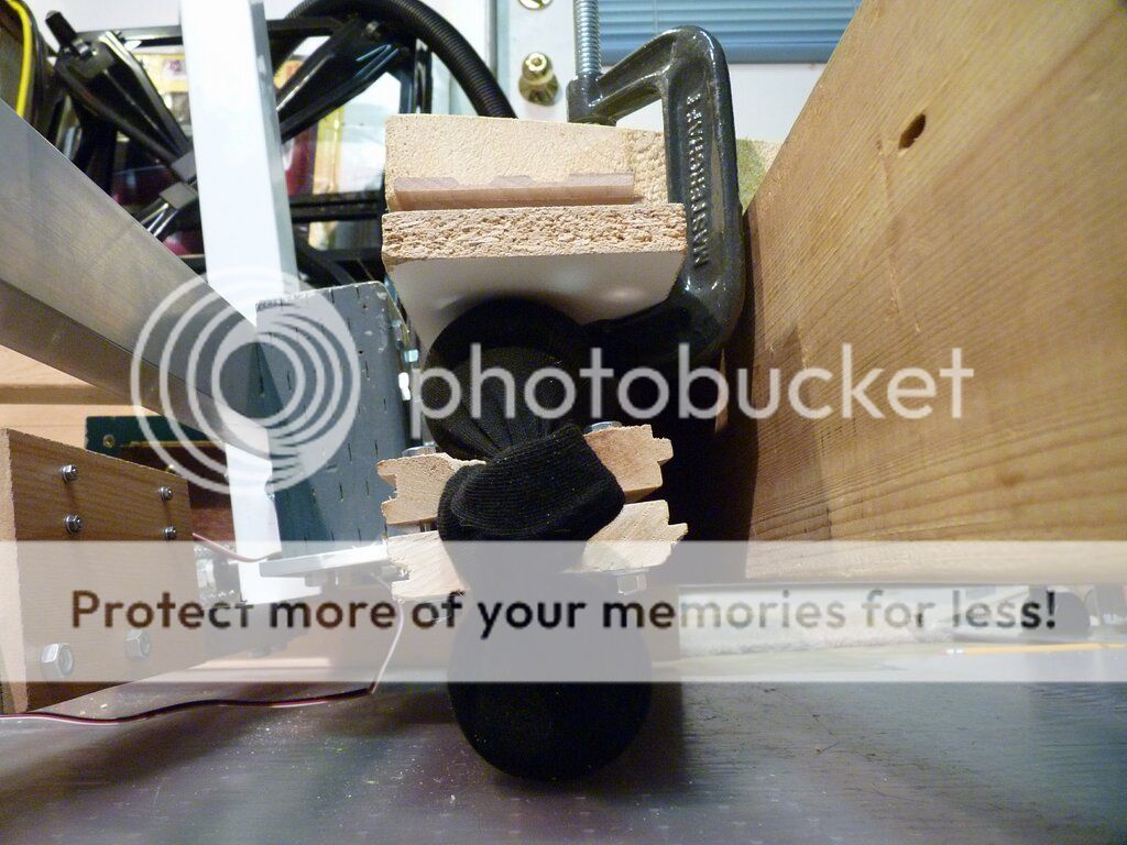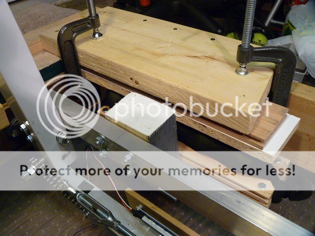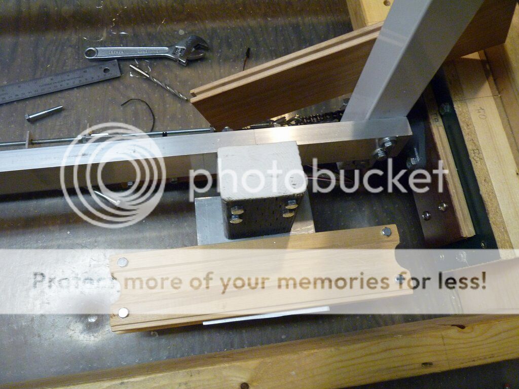 6-mm aluminum plate fixed between two hardwood pieces. Pieces may move in front/back direction - that's the way to fine tune the column angle in neutral position.