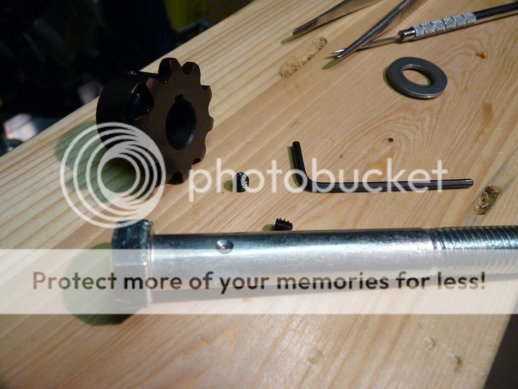 Also, note that I drilled small holes in the axle bolt for the sprocket set screws, so they hold better: