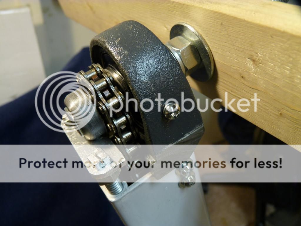 Thanks for sharing this post. I am going to make mine based on this. Please help me understand the chain linkage from the top sprocket to the lower pivot point. How is the chain connected so it turns the horizontal chain mechanism? You mention that you have used 4 sprockets, but if I look at how this is working, it seems there is another sprocket hidden inside the column at the bottom pivot where the chain is passing?
