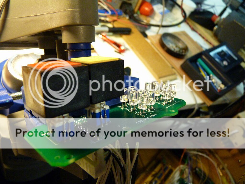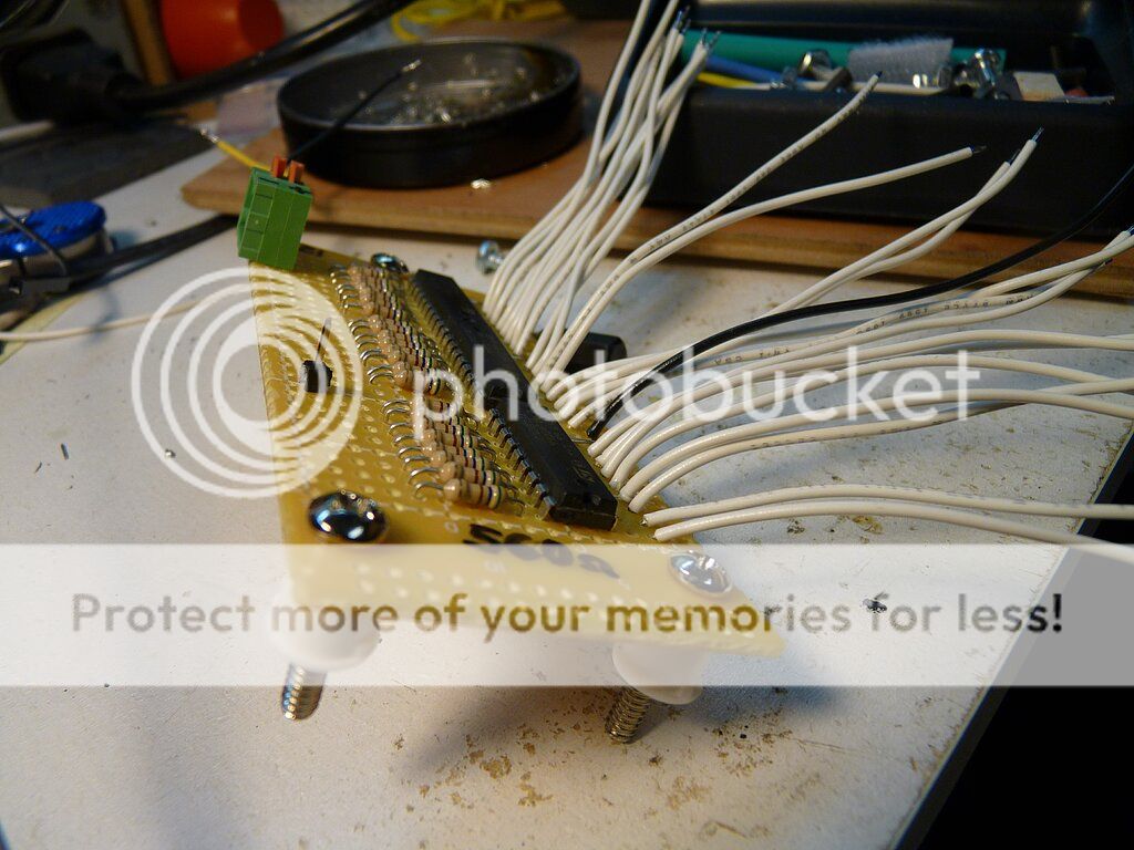 Note also, that Pokeys card outputs need a common plus, not ground. In case of using LED extension boards the outputs go through ULN2803A chip then limiting resistor (560 Ohm in my case for +12v) then through DB-25 cable to MIP that has common +12 connector for LEDs.