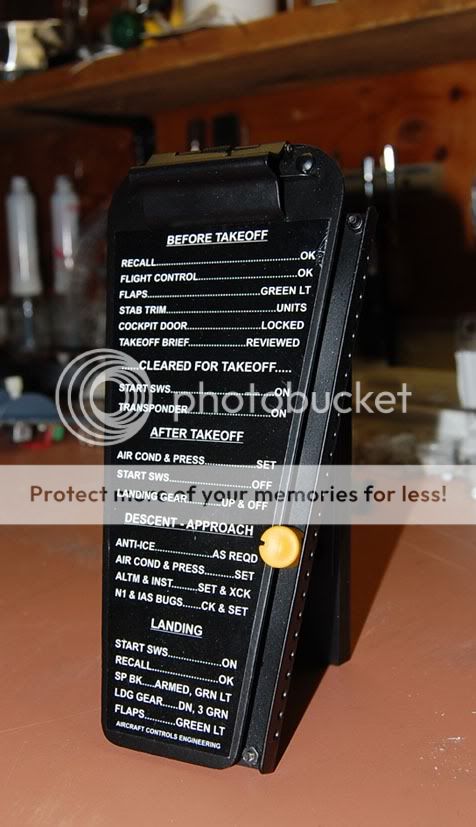 Here is the ACE Yoke Clipboard, outstanding quality, the little yellow tab moves and clicks exactly like the real thing and the unit could be swapped on a real new 737 without anyone knowing!!