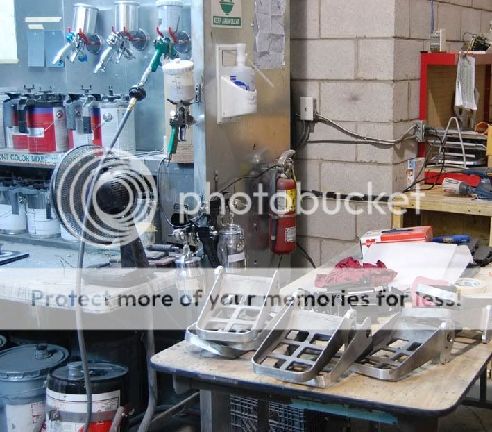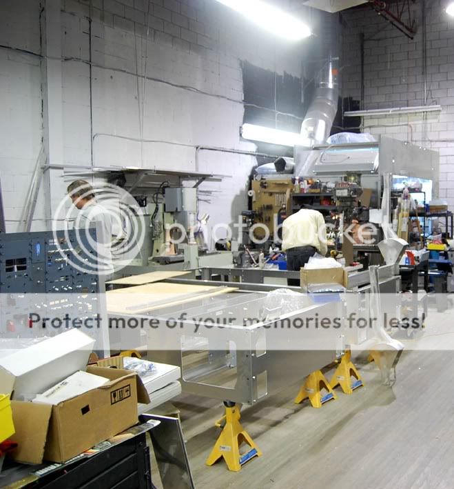 You can see here an all aluminum plateform for a 777 with the linked yokes being installed, and the paint booth at the far back.