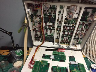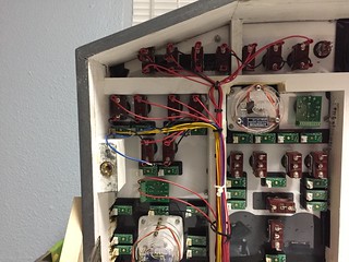 Once that was all done, I removed the lights and began the fun process of wiring all the switches and indicators.  I'm currently making my way down the first column of panels.