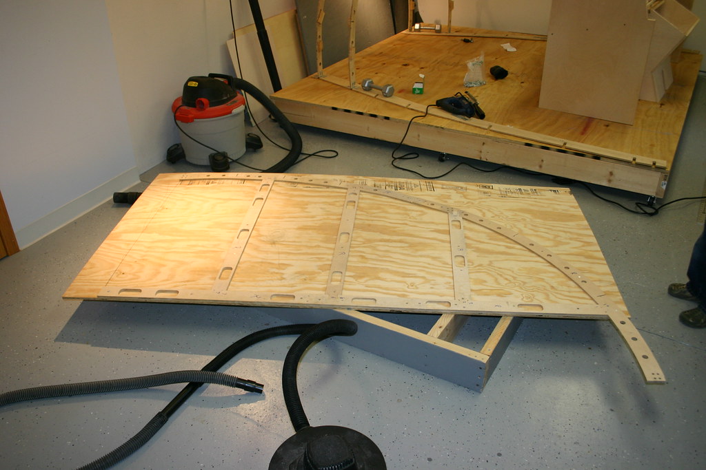 My plan is to finish the windows then the top.  It will be able to break down into 5 pieces (two sides, top, and two back walls).   Next I will work on interior panels, placing the MIP, pedestal, seats, dual linked real rudders, and my yoke setup.   Finally I will finish it off with the glorias FDS overheads, CDUs, and CP Flight MCP and Efis units.