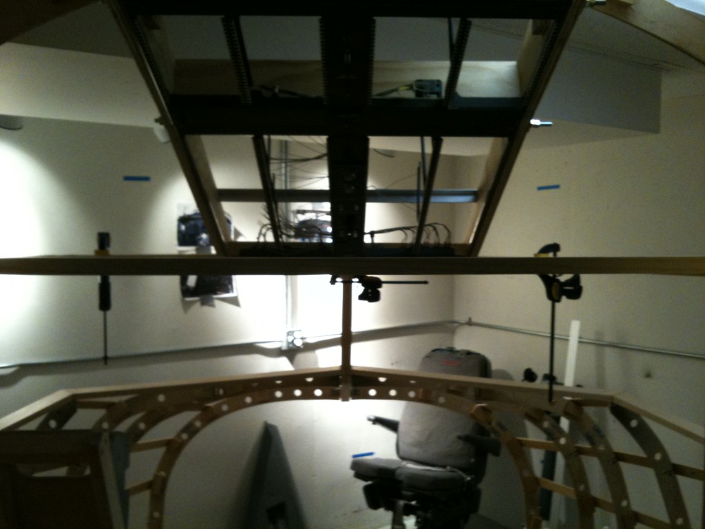 It is tight but should work.   Toughest part will be getting projectors squeezed in right above and aft of the windows on the ceiling.   I will likely use the BenQ 782st's that Ivar used  or InFocus 1503's and throw distance (screen radius from TQ) will be about 6 ft.